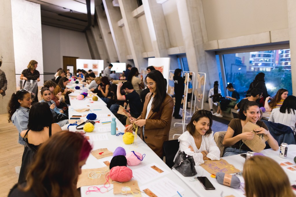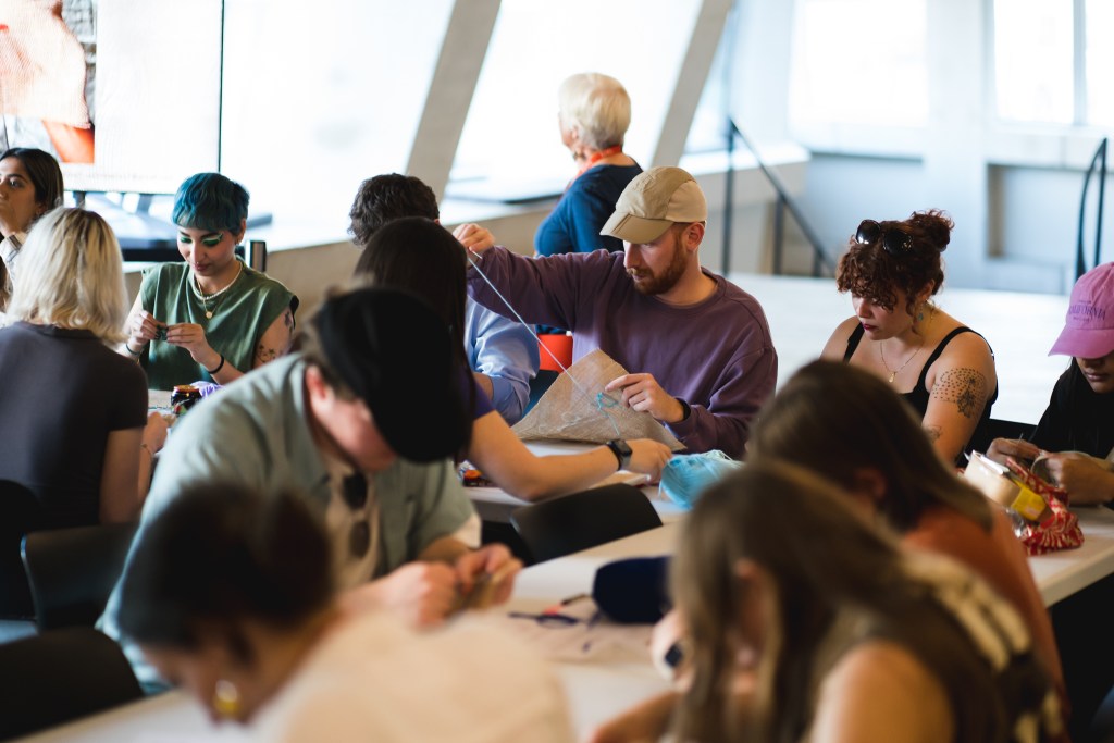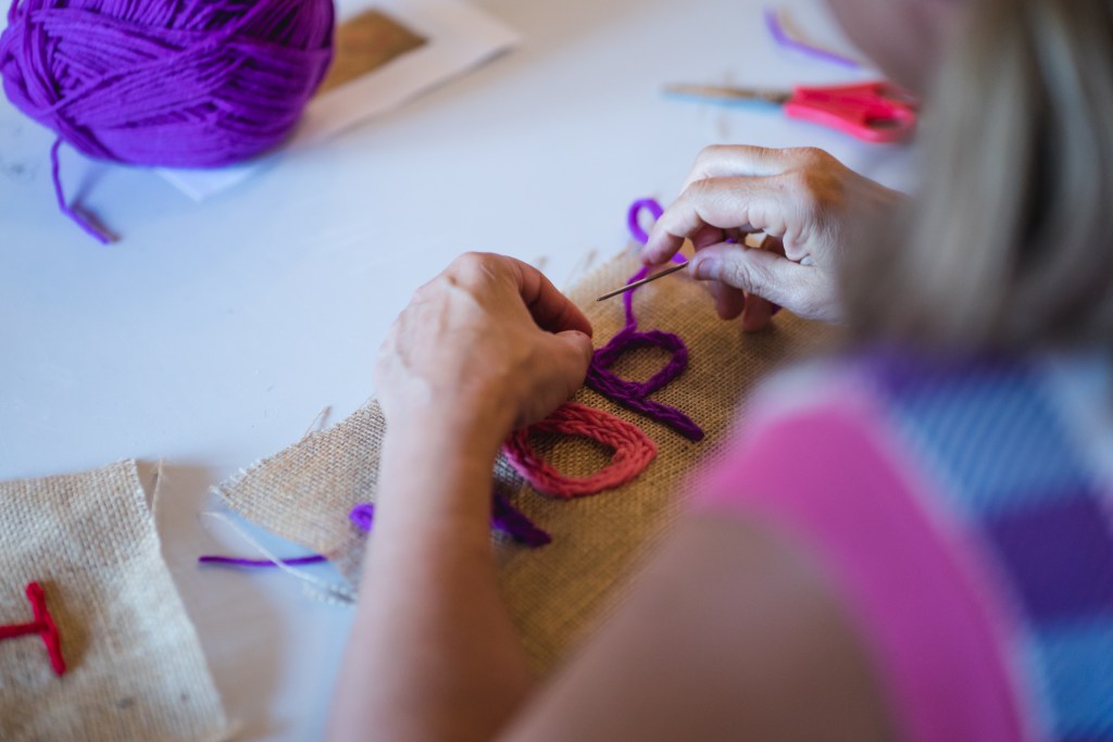Together we embroidered / stitched hessian banners with statements of protest, hope, and resilience.