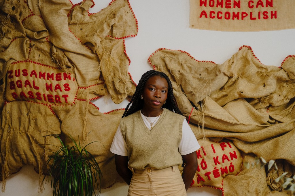 Joke Amusan is a German-Nigerian artist based in London, England. Her art practice illuminates the rich and multifaceted experiences of Black womanhood. Through her exploration of identity, heritage, and migration, she creates immersive installations and evocative sculptures that engage multiple senses. Challenging preconceived notions and perceptions. Her art serves as a conversational bridge: inspiring women to come together, share their stories, and unapologetically embrace their authentic selves.