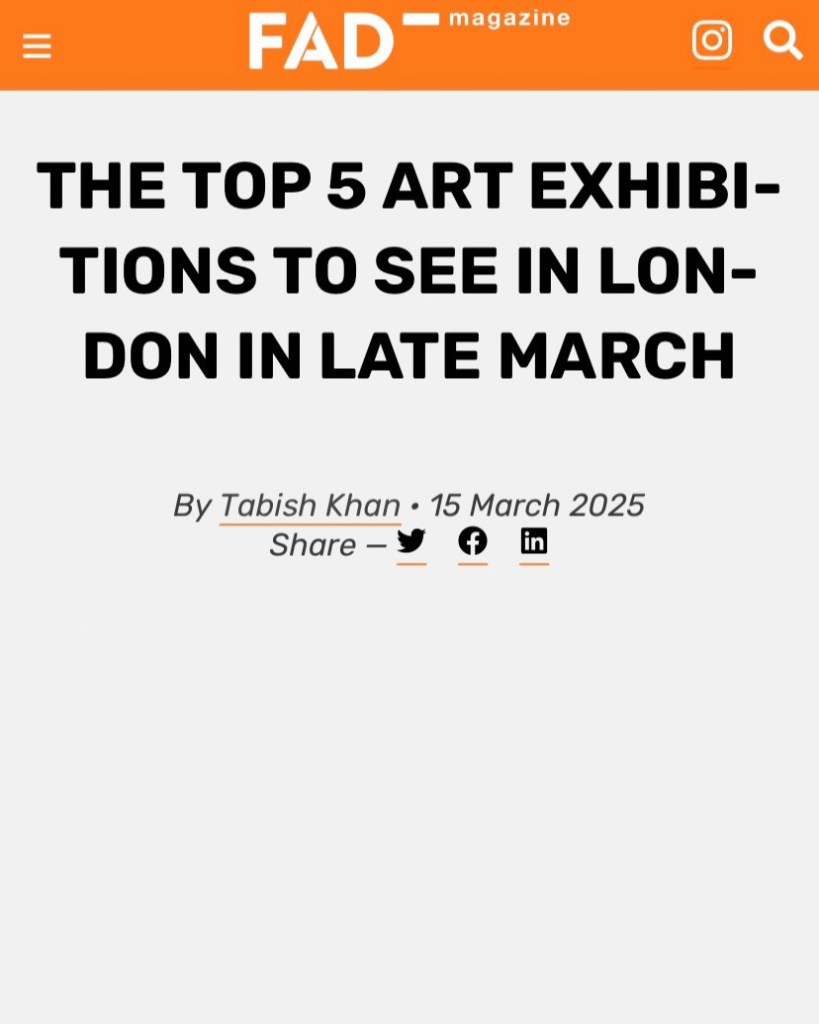 ’The Top 5 Art Exhibitions To See In London In Late March’ – written by Tabish Khan (London Art Critic)